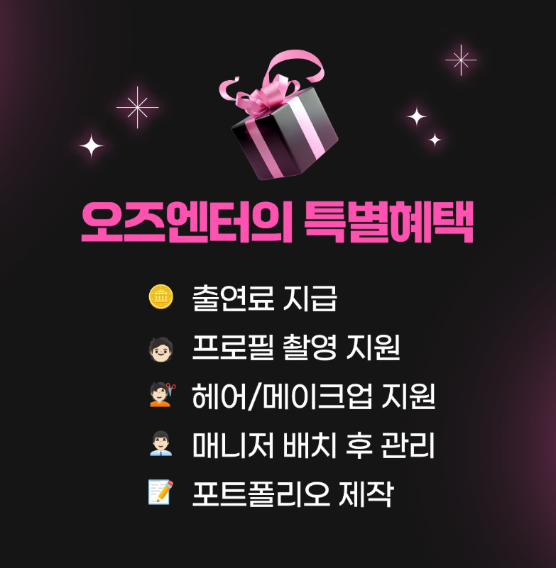 - 연령: 만 4세~17세 — 드라마·영화·광고·잡지·패션쇼 등 폭넓은 섭외